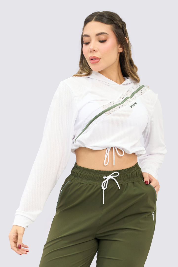 Este buzo es la fusión perfecta entre ligereza y estilo funcional. Su tela fresca y transpirable lo convierte en tu mejor aliado para entrenar al aire libre o para esos días en que necesitas una capa ligera sin perder movilidad. El ajuste con cordón en la cintura define tu silueta, mientras que la capucha y los detalles en contraste le dan un aire urbano y moderno.